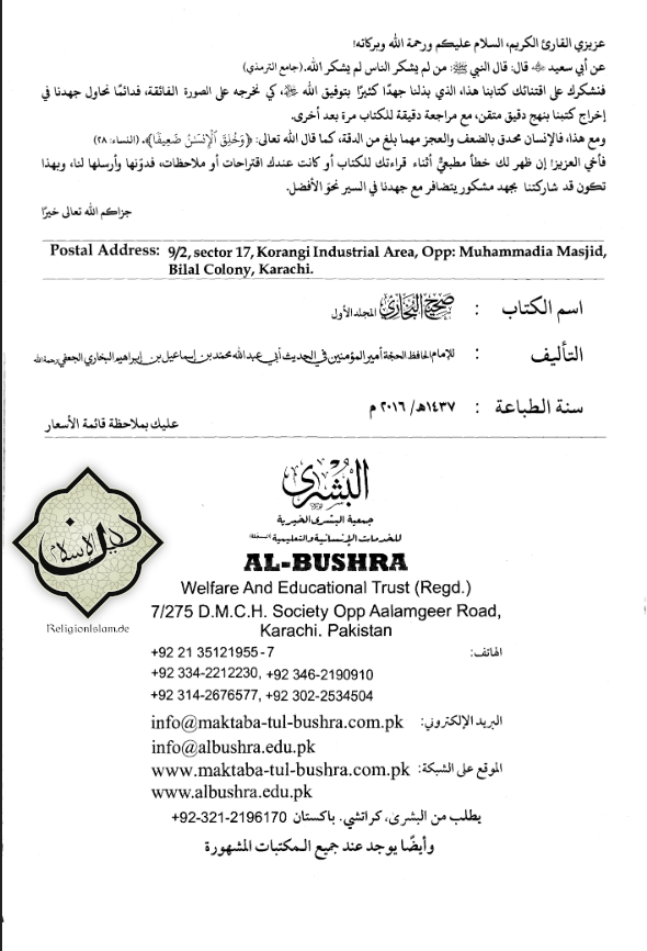 Und er pflegte das lebendig Begrabene (Mädchen) abzuhalten, er sagte zu dem Mann, als er seine Tochter töten wollte: Töte sie nicht. Ich werde dir genügen (für) ihre Versorgung. So nahm er sie. Und sie dann aufgewachsen war, sagte er zu ihrem Vater: ‚Wenn du willst, gebe ich sie zu dir zurück, und wenn du willst, genüge ich dir (für) ihre Versorgung‘“